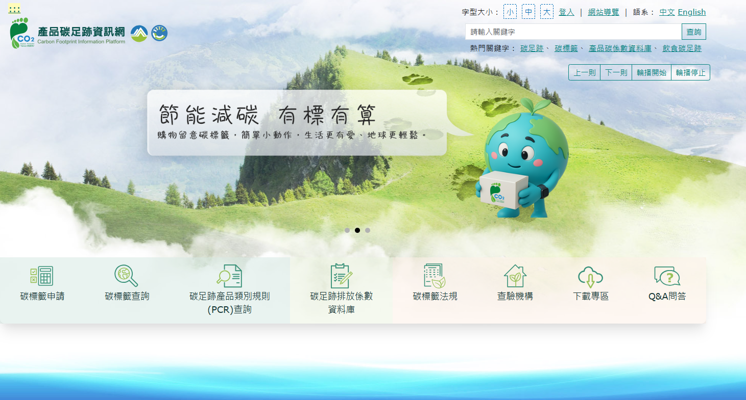 提供民眾查詢各類產品碳足跡標籤資訊、係數