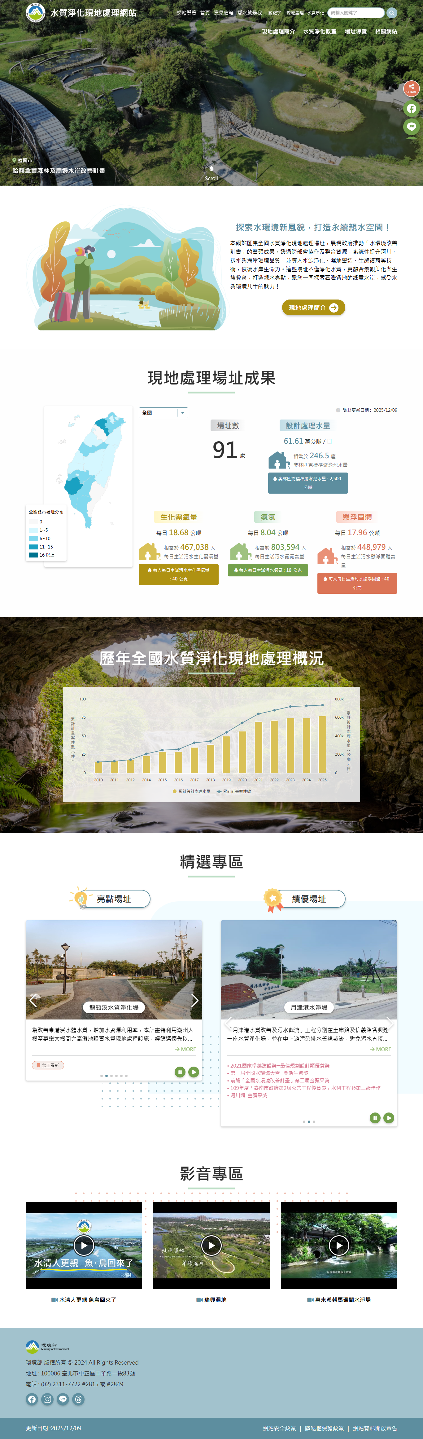 彙集全國水質淨化現地處理場址,展現政府推動「水環境改善計畫」的豐碩成果。