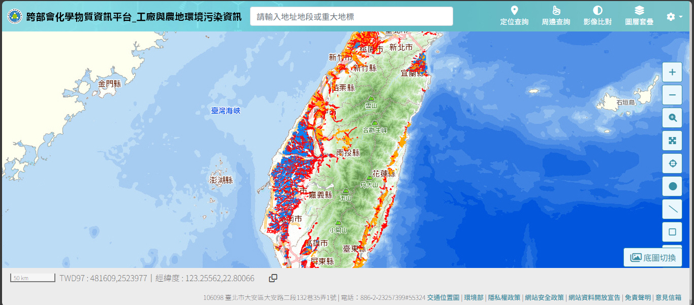 行政院交辦本署建置「工廠與農地環境污染資訊平台」,彙整各部會未登記工廠、農地、灌排水及環境監測等資訊,以利污染源監控查詢。