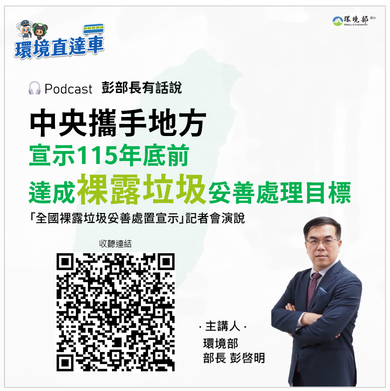 透過中央與地方政府的努力協調及規劃,針對裸露垃圾的處理時程從原先預計的12年縮短為2年,當中像是桃園市及新竹縣就非常積極展現處理的決心,過程中彭部長也與許多地方首長共同討論並達成默契及共識,環境部更努力精算解決方案並向行政院報告,行政院卓榮泰院長指示並於去(113)年核定,三年共12億經費核撥地方協助,目標於115年底將台灣露天裸露的問題完全解除。