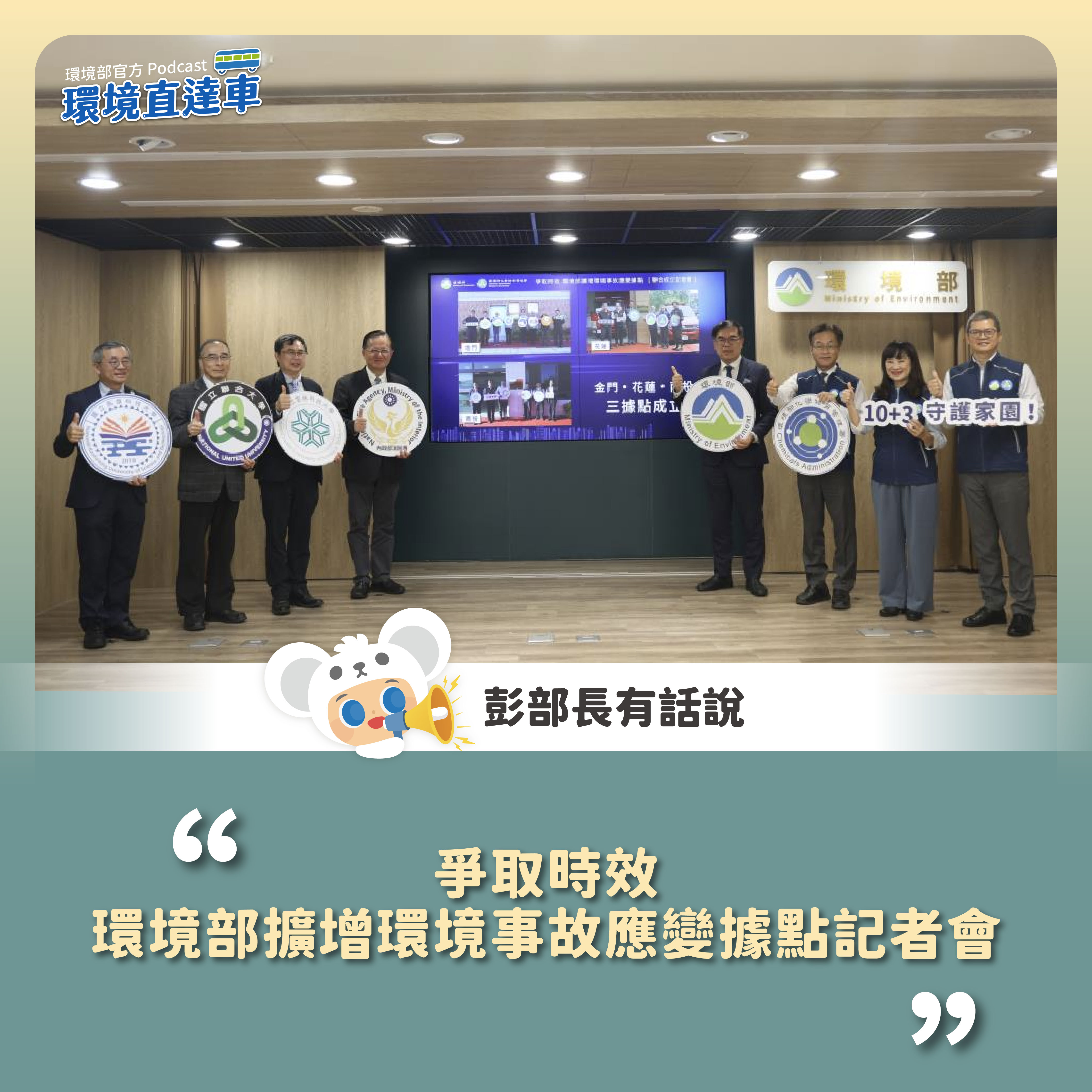 環境部於今(30)日召開記者會,宣布於花蓮、南投、金門成立環境事故專業技術小組,並與消防署、當地環保局、消防局辦理聯合揭牌儀式。彭啓明部長表示,3處小組的成立,將縮短當地化學物質事故應變時間,強化即時處理能量,使全國環境事故應變網絡更加綿密與完善。彭部長也揭露正在推動技術小組轉型為行政法人,建立化災預防及應變專責單位,整合跨部會量能,打造高效、專業、穩定之國家級專業技術後盾。