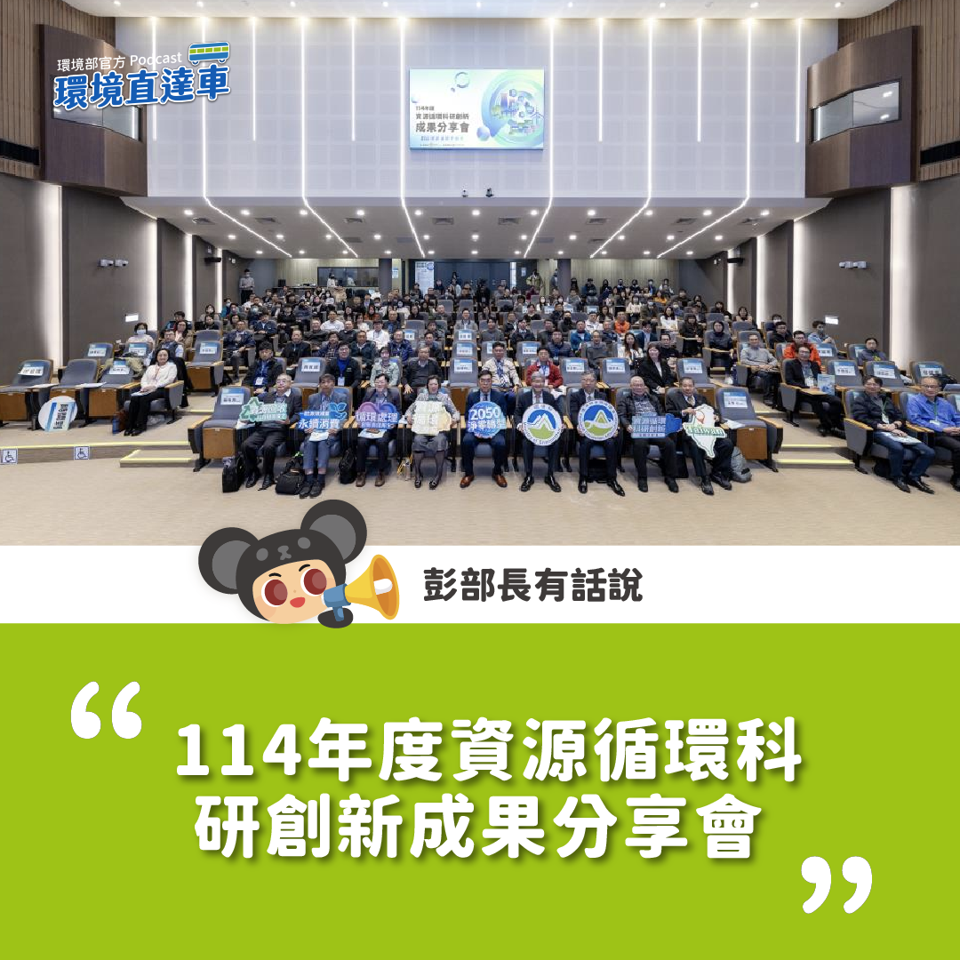 環境部資源循環署115年2月9日於環境部會議中心舉辦「114年度資源循環科研創新成果分享會」,展示於循環處理、資源回收及永續消費三大主題成果,計有63件計畫進行發表與海報展示。同時,邀集超過300位產、官、學、研各界共同參與討論,強化跨域對話及促進研發成果加速產業化,期透過前瞻技術的投入,為臺灣建立具國際競爭力的資源循環體系。