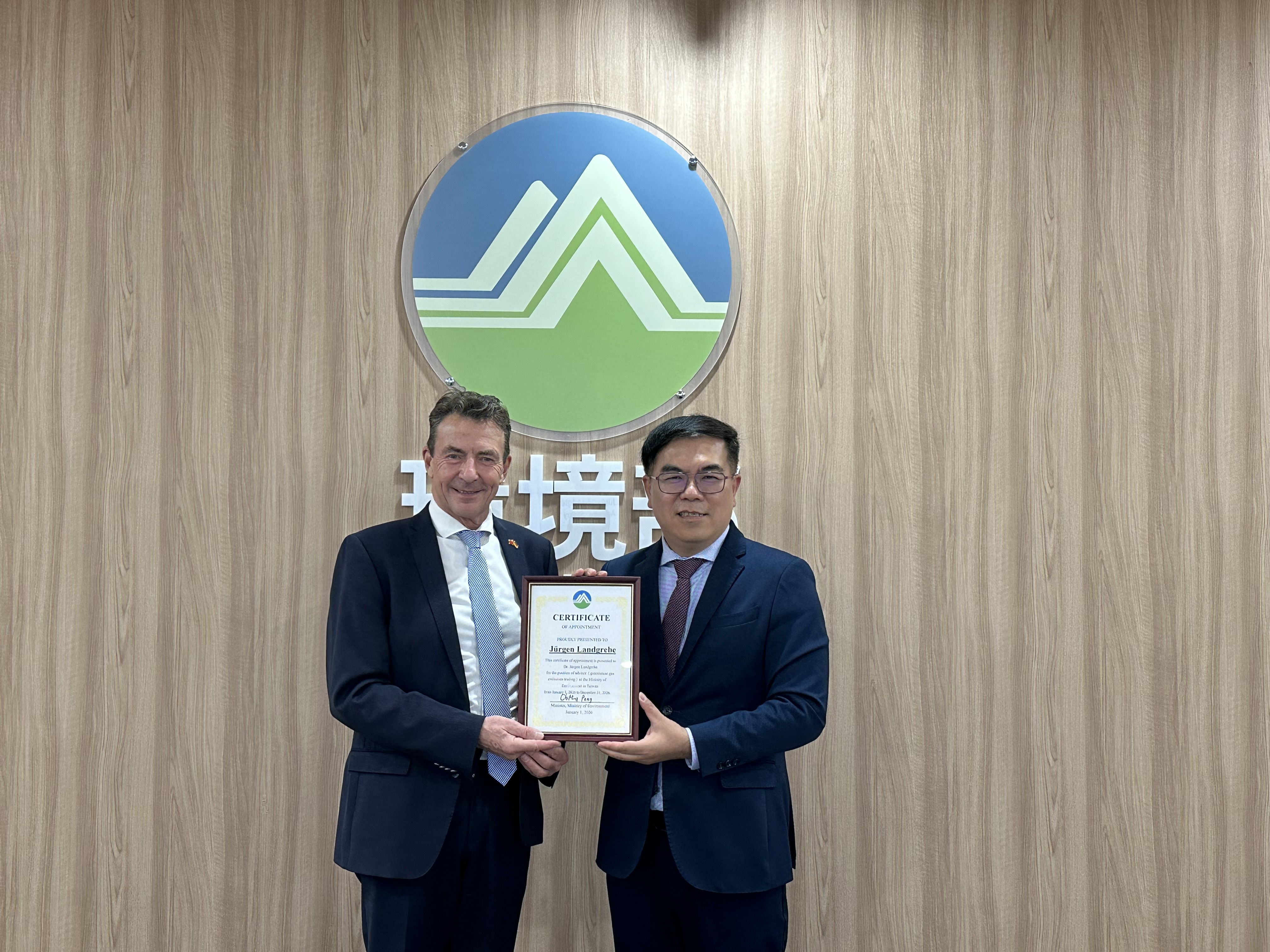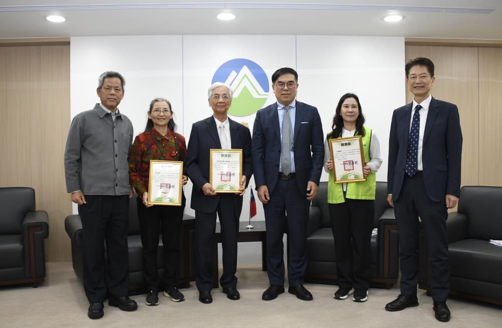 下午 02:00 彭啓明部長接見大安森林公園之友基金會蔡建生常務董事及志工並頒發「環保心舞台 如廁新紀元」展品感謝狀