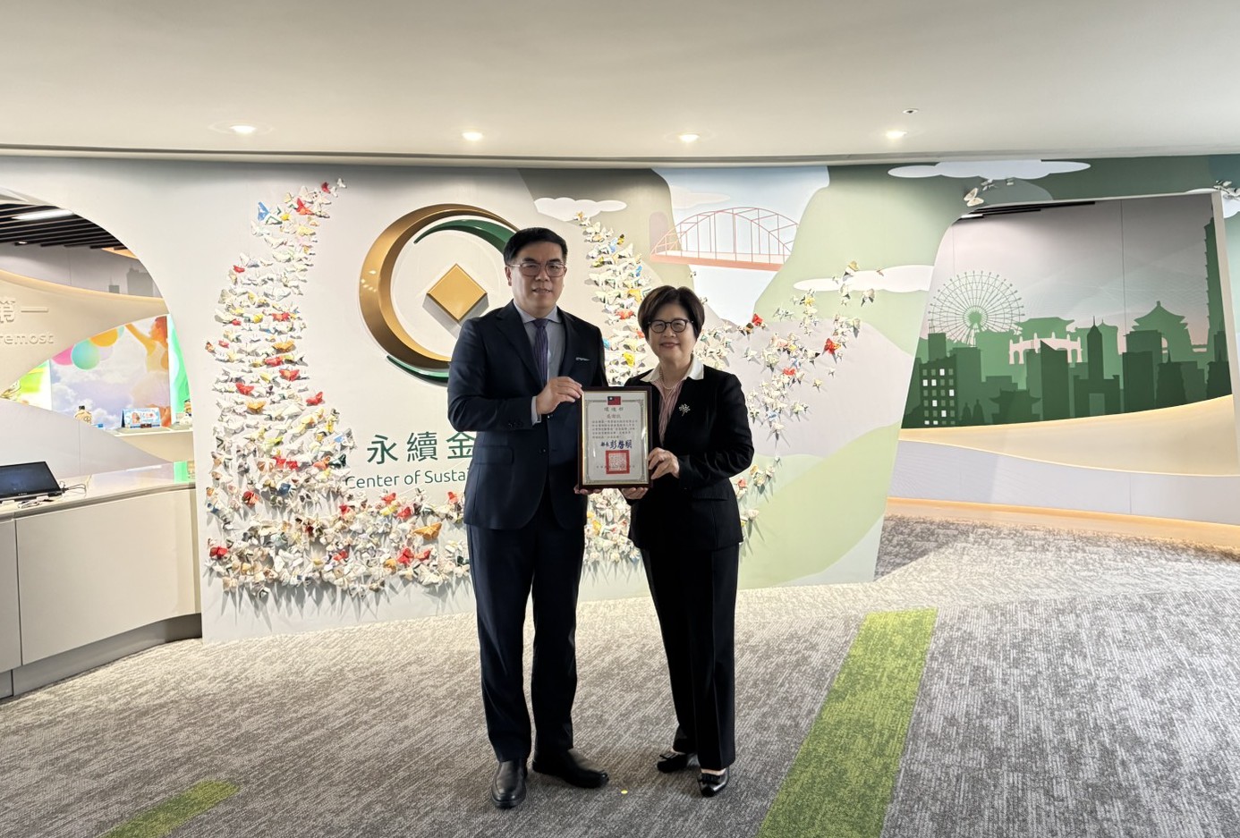 環境部彭啟明部長今(8)日親赴第一銀行,頒發感謝狀予邱月琴董事長,肯定一銀自發號召員工募集 1.6 萬個二手環保紙袋,以實際行動支持「袋袋箱傳」資源循環政策。
